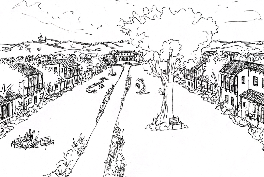 For my thesis, I partnered with fellow classmate Douglas Ridley to create a plan for the 55+ community at a development in Santa Barbara County called Solomon Hills. What makes this development especially unique is that the goal is to create a “new town” with a mixed-use shopping district at its heart. The developers also want cycling to be the primary mode residents travel throughout the town.